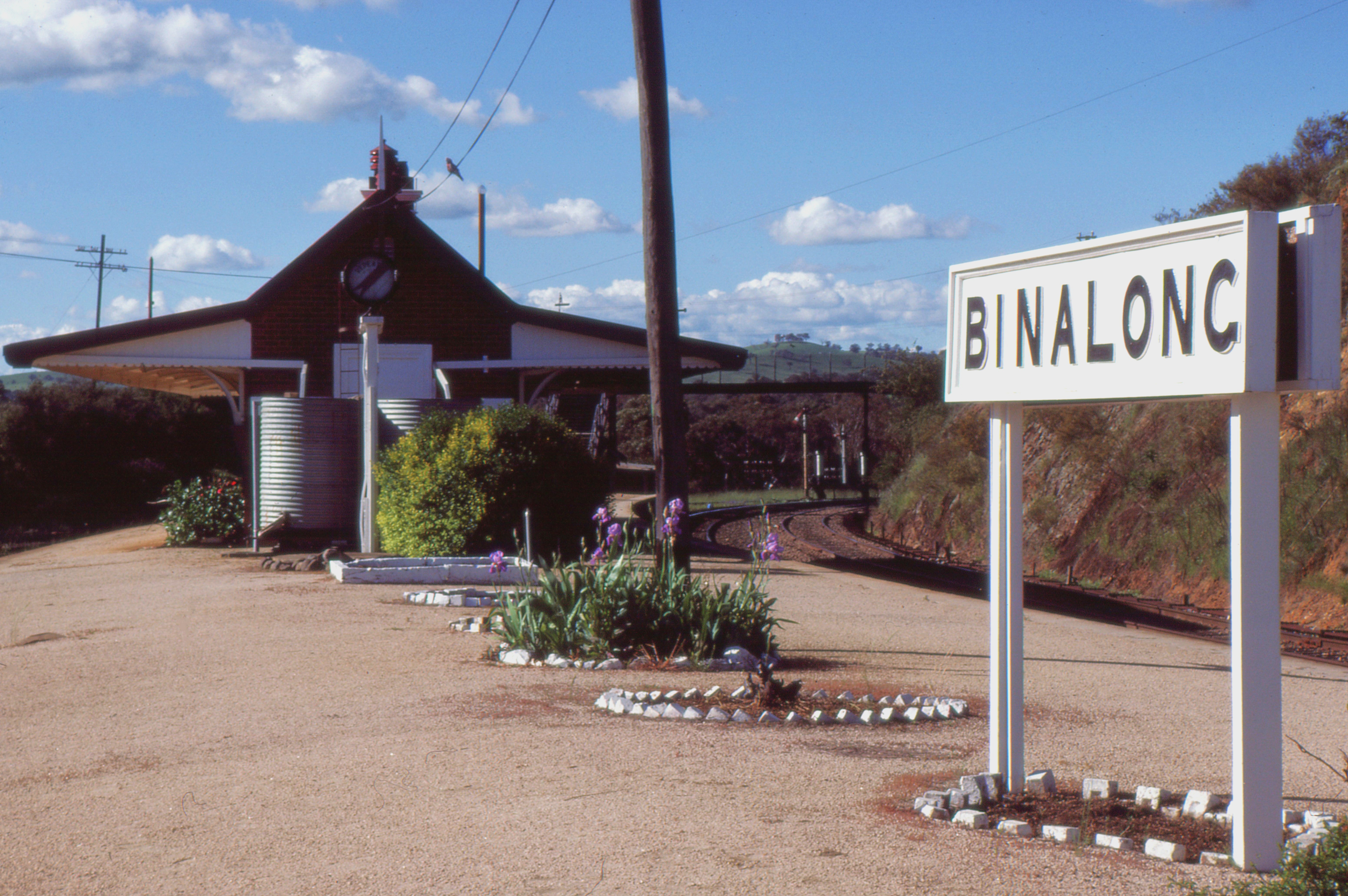 Binalong is 354km south of Sydney on the NSW Main South line. Rails first reached town in 1876 when the line was extended from Bowning. However, the track and station seen here don’t date from that time. When the line was duplicated in 1915, long stretches, including here, were laid on completely new alignments to flatten the grades that the small locomotives of the day had to surmount. This 'new' Binalong station was opened in 1915 and the old track and station, to the left of this photo, was abandoned.